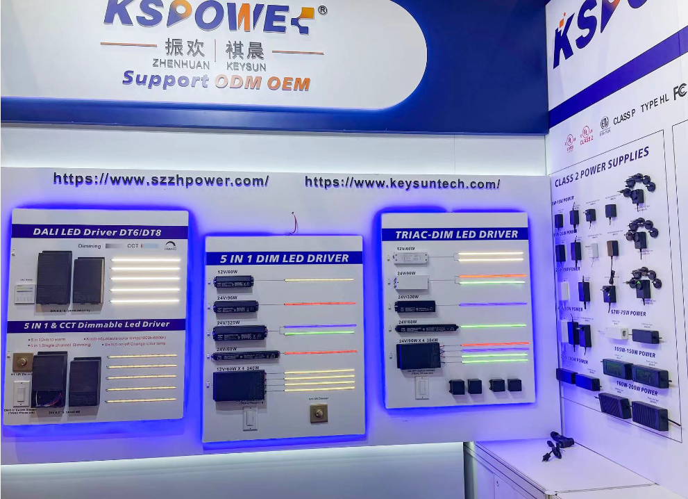 At the 2024 Hong Kong smart ighting Exhibition, held from April 6th to 9th, ZhenHuan, made its first launch DAll dimming and 5 IN 1 + CCT dimmable driver, showcasing its complete dimming functions and the perfect performance LED drivers.